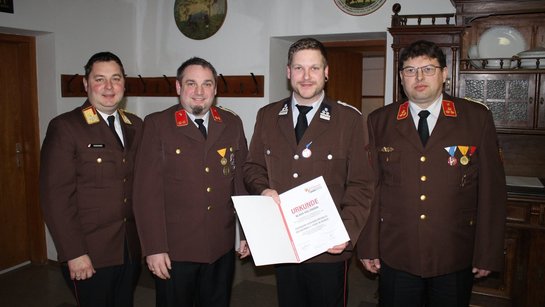 Für besondere Leistungen im Feuerwehrwesen konnten folgende Kameraden mit der Bezirksfeuerwehr-Verdienstmedaille III Stufe in Bronze ausgezeichnet werden: